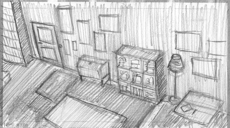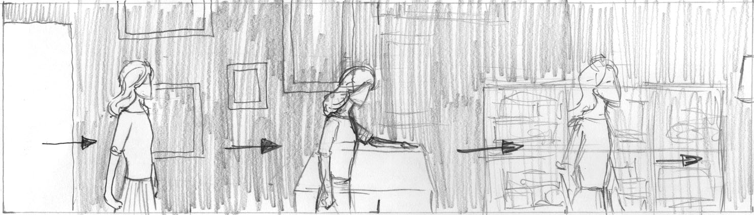 For the first drafts of the animatic, myself and Sadhbh chose Reverie by Debussy for the first act of the film before the Melancholic Wife chooses her own music. We felt this gave a good sense of the initial journey she embarks on. For the change moment we chose Wagner music, for the sense of drama and a journey, specifically from the opera Tannhauser. These two pieces acted as a starting point a placeholder to help visualise the film.